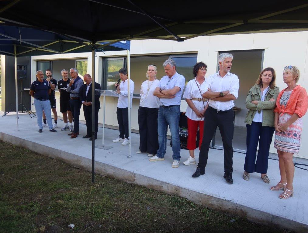 Dimanche 31 août aux installations communales des Aubins, la municipalité et son maire Jean-Marc Boyer avaient convié les parlementaires et les principaux financeurs de plusieurs réalisations communales. Parmi celles-ci la rénovation du stade était le pôle d’attraction de cette fin d’après-midi rythmé par du football et de la convivialité. En présence d’un nombreux public, les joueurs du Puy Foot 43, évoluant au 3ème niveau national étaient les invités d’honneur sur la pelouse verdoyante, bichonnée par l’employé communal Sébastien Menini. La séance d’entraînement organisée par l’entraineur Stéphane Dief et son staff régalait les amateurs de ballon rond avant l’incontournable moment des autographes plébiscités par les joueurs du groupement Nord Velay. Lors de son discours, le maire Jean-Marc Boyer remerciait tout d’abord l’équipe du Puy Foot 43 accompagnée de son président Christophe Gauthier en ayant une pensée pour un de ses dirigeants Eric Sahuc qui a porté les couleurs du FC Blanzac et dont le fils Jérémy est un des membres du staff du club Ponot. Le premier magistrat retraçait l’historique de ce stade « permettez- moi tout d’abord d’avoir une pensée pour Jean Boyer qui nous a quitté il y a quelques semaines. En tant qu’agriculteur, Il a tout d’abord exploité cette parcelle en fermage avant qu’elle devienne à la fin des années 80, un practice de Golf, un projet ambitieux sur le domaine de Soleilhac par ailleurs reconnu pour la richesse de son site préhistorique, abandonné face aux tergiversations du propriétaire. Quelques années plus tard, c’est lui et son équipe municipale qui ont eu l’initiative de réaliser ce stade en 1990, inauguré le 28 juin 1991 par Eric Cantona, le footballeur, l’acteur et chanteur à forte personnalité ». Après une période d’utilisation réduite, 2021 a été le lancement d’un projet dans le cadre de l’amélioration des équipements en faveur du Velay Football Club (issue de Polignac, Saint-Paulien et Blanzac) et du Groupement Nord Velay (club formateur issue des communes précitées mais également du secteur de Loudes). Les 3 communes du Velay Football Club ont programmé des réalisations sur leurs trois stades : Polignac a construit son terrain synthétique qui s’avère très utile ; à Saint-Paulien la pelouse a été rénové et les vestiaires remis aux normes. A Blanzac, la pelouse a été engazonné et une salle de réception et des box de stockage pour les associations ont été construits. C’est certainement très rare et c’est important de le souligner, les 3 communes ont établi un dossier en commun pour solliciter des aides de l’Etat et de la Région. Le maire clôturait son propos en remerciant tous les partenaires financiers (département, région et état), les élus des diverses collectivités et les entreprises ayant réalisées les travaux. Les parlementaires, la présidente du département et la secrétaire générale de la préfecture ont rendu hommage à Jean Boyer, soulignant son côté tellement créatif, son attention aux autres, sa simplicité qui ont permis de métamorphoser sa petite commune, œuvre poursuivie par son fils Jean-Marc dans un esprit de solidarité et d’entraide pour offrir des équipements de qualités à tout le tissu associatif.