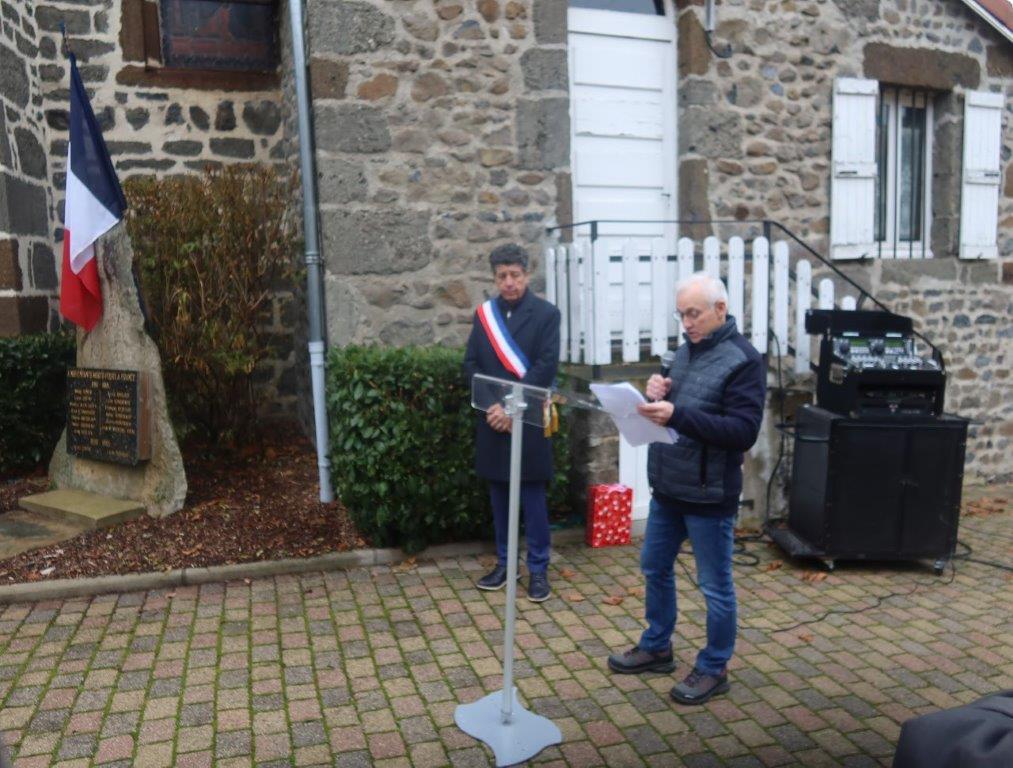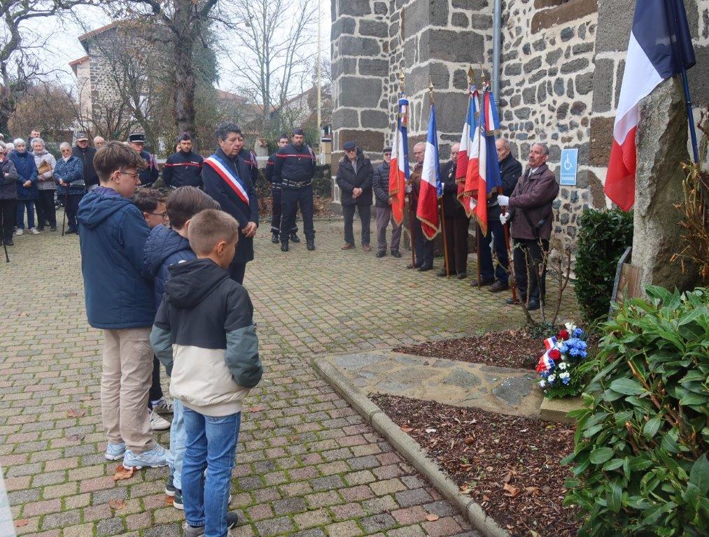 Samedi 29 novembre, la cérémonie de commémoration de l’armistice du 11 novembre 1918 avait rassemblé la population, tout d’abord à l’église avec une messe célébrée par le père Léon Julien. Après l’office religieux, la petite délégation des anciens combattants avec leur président René Vidal et les fidèles porte-drapeaux se rendait autour du monument aux morts, rejoints par les sapeurs-pompiers avec leur chef Patrice Trincal. Après les lectures des messages nationaux, les enfants déposaient la gerbe devant le monument. Le maire Jean-Marc Boyer rendait hommage aux victimes des guerres dont les noms sont inscrits sur la stèle. Le chant de la Marseillaise et l’hymne Européen clôturait l’importance de se souvenir et de transmettre aux jeunes générations le sens de l’histoire, ses douleurs et ses joies.
